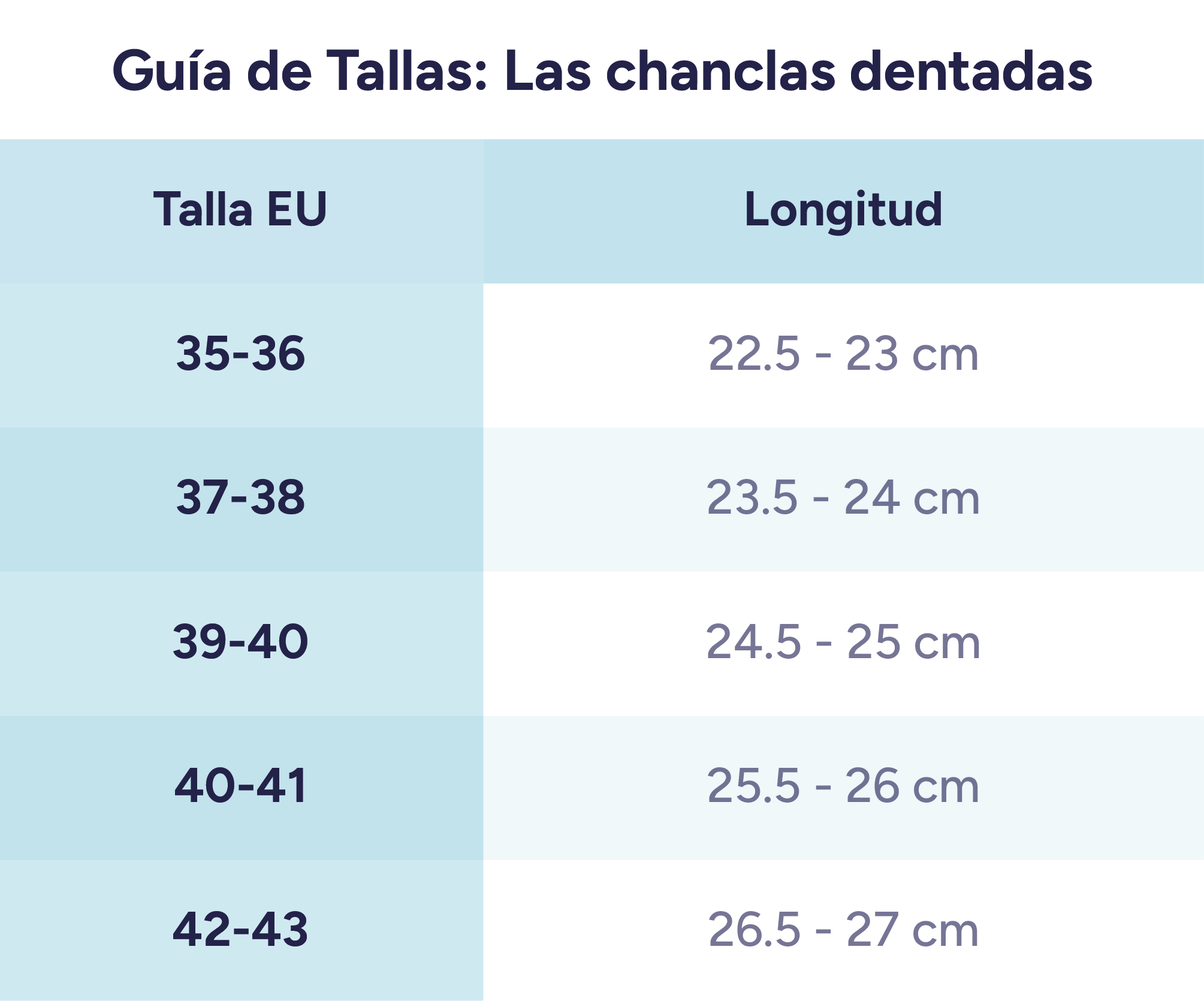 Si tienes dudas, comprueba antes la GUÍA DE TALLAS de tus chanclas dentadas👇